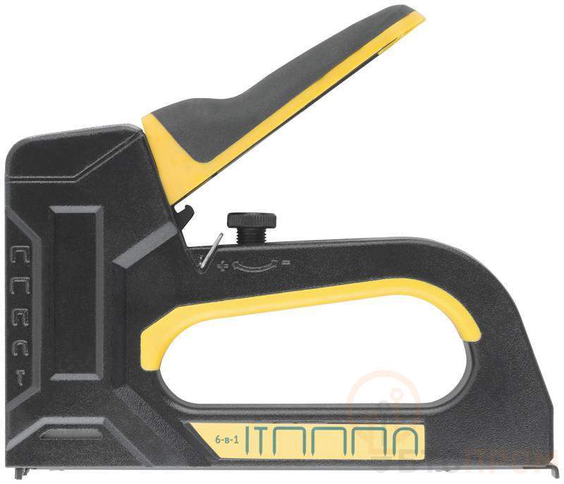 Степлер 6-в-1 для скоб "тип 53" "тип 53F" "тип 140" "тип 28" "тип 300" "тип 500" 4-14мм с регулировкой силы удара рессорныймеханизм алюм. FIT 32168
