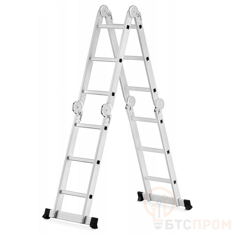 Алюминиевая лестница-трансформер повышенной прочности при небольшом весе обладает надежностью и высоким уровнем удобства во время использования. Большим преимуществом таких лестниц-трансформеров является количество возможных позиций, в которых их можно использовать и компактность, которая облегчает их перемещение и транспортировку. Регулировка производится при помощи стальных шарниров, которые обеспечивают надежную автоматическую фиксацию выбранного положения лестницы. Изделие оснащено противоскользящими рельефными ступенями, что гарантирует безопасность во время использования. В рабочем положении лестница трансформируется в лестницу: приставную, свободностоящую и лестницу-помост. Лестница-трансформер имеет надежное крепление ступенек к тетивам, опорные концы тетив лестницы имеют крепление из нескользящего материала для предотвращения возможности сдвига и опрокидывания во время работы. Изделие выполнено из специального алюминиевого сплава, что делает его долговечным и защищает от коррозии. В нерабочем положении лестница занимает мало места. Технические характеристики: Ширина лестницы: 360 мм Ширина опорной поверхности ступеней: 28 мм Расстояние между ступенями: 270 мм Размеры лестницы в сложенном положении: - высота: 950 мм - ширина: 360 мм - толщина: 270 мм Масса: 11,8 кг Высота лестницы (приставная): 3460 см Высота лестницы (свободностоящая): 1670 см Высота лестницы (помост): 940 см Длина помоста: 1400 см