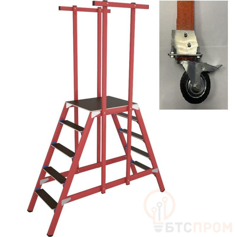 Стремянка диэлектрическая ССД-1.2 ПК (подмость с колесами) с симметричной опорой стеклопластик. Антиток Д413774