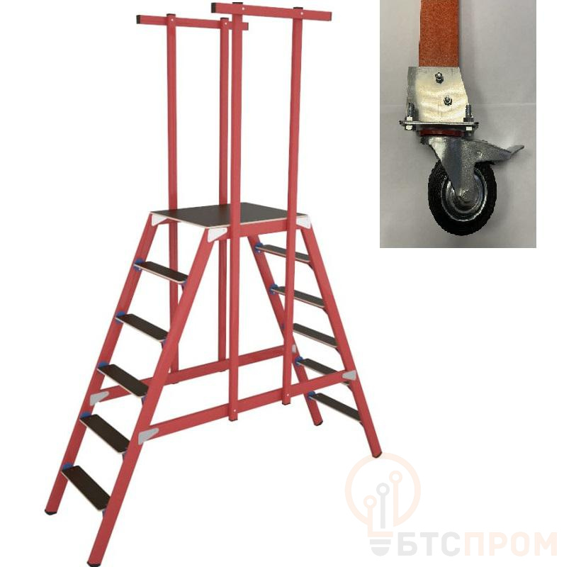 Стремянка диэлектрическая ССД-1.8 ПК (подмость с колесами) с симметричной опорой стеклопластик. Антиток Д413785