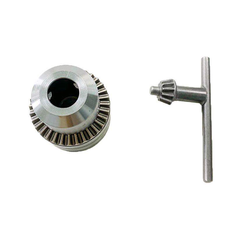 Ключевой патрон с посадочным диаметром 1/2 дюйма подходит для фиксации оснастки диаметром 1,5-13 мм в дрели. Высококачественное исполнение позволяет использовать его для профессиональных целей. Патрон с кулачками твердостью 54-56 HRC выдерживает интенсивное использование, может применяться в ударном режиме. Ключевой механизм обеспечивает большое усилие затяжки оснастки, что является гарантией надежной фиксации. За счет рельефной поверхности с патроном удобно работать, так как он не выскальзывает из рук. К патрону прилагается ключ для смены и фиксации сверл.