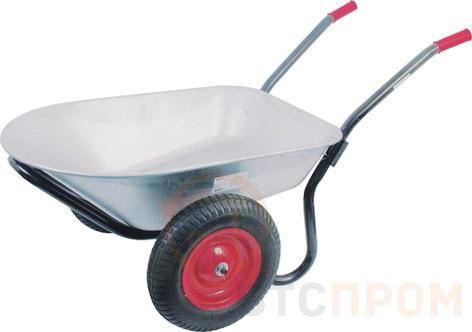 Двухколесная. Грузоподъемность 150 кг. Объем 78 л. Диаметр надувного колеса 390 х 90 мм. Тип колеса 4,80" / 4,00" - 8". Вес тачки 11,8 кг Кузов: стальной оцинкованный. Рама из стальных труб, окрашенная. Прорезиненые ручки. Может использоваться с колесами 77562д, 77567, 77587.