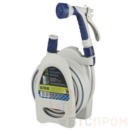 Катушка компактная с ручкой для переноса и хранения шланга + шланг 9.5мм (3/8)х10м с пистолетом-распылителем 7 реж. пластик. коннекторами (1/6) Green Apple Б0003110