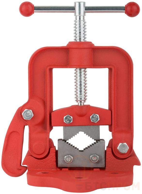 Тиски для труб FIT IT позволяют зажимать трубы диаметром 10–89 мм. Рама и станина тисков изготовлены из высокопрочного чугуна, что обеспечивает прочность и долговечность инструмента. Губки и винтовая штанга выполнены из качественной инструментальной стали. Покрытие корпуса эмалью предотвращает коррозию.