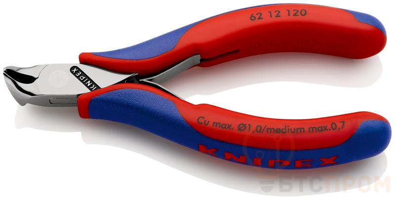 Кусачки торцевые для электроники губки 15град. режущие кромки без фаски с пружиной L120мм двухкомпонентн. рукоятки Knipex KN-6212120