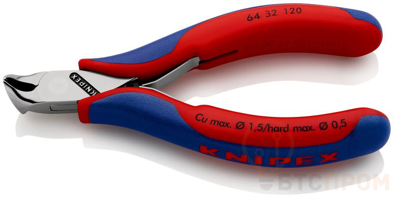 Кусачки торцевые для электроники режущие кромки с маленькой фаской под 15град. с пружиной L-120мм Knipex KN-6432120