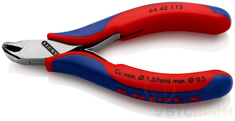 Кусачки торцевые для электроники режущие кромки с маленькой фаской под 27град. с пружиной L-115мм Knipex KN-6442115