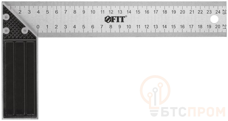 Угольник столярный FIT IT предназначен для проверки углов 90 и 45 градусов при выполнении разметочных работ. Двусторонняя рифленая гравированная износостойкая метрическая шкала способствует повышению качества работы. Фрезеровка рукоятки обеспечивает точность угла 1,0 мм/м. Линейка из нержавеющей стали с толщиной 1,0 мм обладает высокой жесткостью и износостойкостью. Литое алюминиевое основание с дополнительным ребрами жесткости имеет малый вес в сочетании с высокой прочностью. Трехточечное крепление полотна с основанием способствует избежанию люфтов. Отверстие в линейке позволяет хранить инструмент в подвешенном положении.