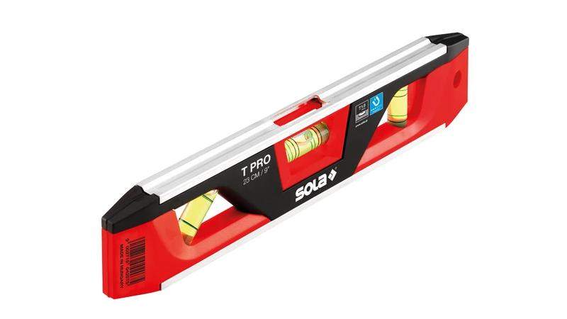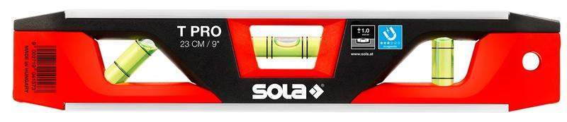 Уровень алюминиевый SOLA T Pro 01430701 высотой 23 мм позволяет определить отклонения от горизонтальной, вертикальной поверхности, а также проводить измерения под углом 45° с допуском измерения ±1 мм/м. Ампула с 4 рисками для более точной индикации уклона (в 2 %) при горизонтальном измерении. Аллюминиевый корпус в комбинации с АБС-пластиком делает инструмент прочным и легким. Прибор устойчив к механическим воздействиям к влаге, жаре и холоду и исключает перекос формы профиля при возникновении перепада температур. Уровень не оставляет следов трения на плитке и камне. Измерительные колбы ("глазки") в форме трубочек выполнены из ударопрочного акрилового стекла и имеют 30 лет гарантии на герметичность. Высокоточные флуоресцентные глазки облегчают работу в тёмное время суток. Уровень имеет V-образную форму для труб. Магнитные полоски позволяют закрепить его на металлических поверхностях и производить монтаж со свободными руками.