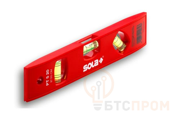 Пластиковый уровень (L=20 см, 3 глазка) SOLA PT 5 01430201 позволяет определить отклонение поверхности по вертикали, горизонтали и под углом 45 градусов. Модель выполнена из пластика, который обладает устойчивостью к температурным изменениям окружающей среды и влаге. Благодаря светоотражающей подложке не составляет труда работать уровнем в затемненном помещении. Приспособление не оставляет следов на керамической плитке