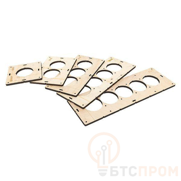 Комплект шаблонов предназначен для сухого сверления отверстий под подрозетники на стенах из бетона, кирпича, блока, гипсокартона, плитки, дерева и др. Комплект состоит из 5-ти рамок с количеством отверстий от 1 до 5. Применяются в паре с алмазными коронками. Шаблоны упрощают и ускоряют работу в разы.