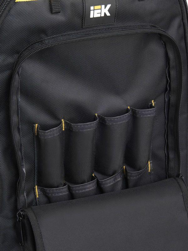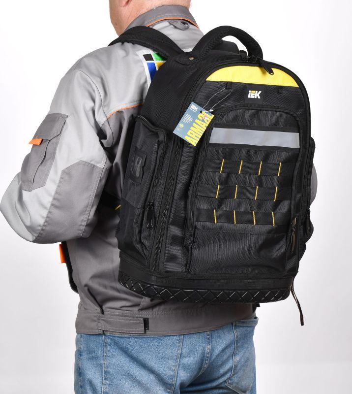 Рюкзак монтажника с резиновым дном BP-07 предназначен для удобной и безопасной транспортировки инструментов при выездных работах. Рюкзак выполнен из ткани полиэстер 1680D Оксфорд с PVC-пропиткой, обладающей высокой износостойкостью и влагозащитой. Прорезиненное дно с высокими бортиками защищает рюкзак от промокания и загрязнения. Спинка, лямки и ручка имеют специальные анатомические вставки. В ассортименте IEK есть аксессуар для рюкзака – вкладыш для инструмента BG-08.