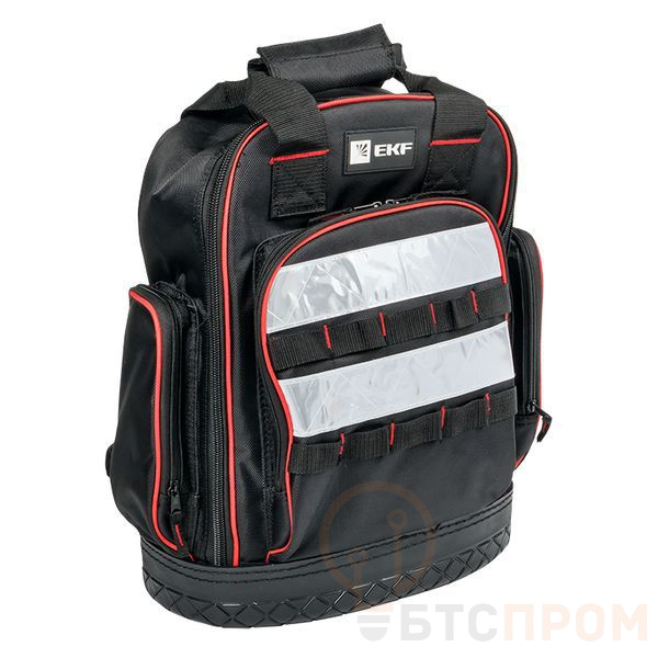 Рюкзак монтажника С-07 используется для хранения и переноски инструмента Особенности: 1. Выполнен из ткани 1680D Оксфорд, состав 100% полиэстер. 2. Мягкие анатомические вставки на спинке и лямках рюкзака для комфорта. 3. Резиновое дно для защиты рюкзака от попадания масла и влаги. 4. Две ручки для переноски вместо одной – удобно носить, не бьется об ноги. 5. Светоотражающие элементы на внешней стороне рюкзака для безопасности. 6. Отдельный карман для мультиметра – измерительный инструмент хранится отдельно. 7. Усиленная молния с прочными звеньями – гарантия долгой службы. 8. Узловые места имеют дополнительную прострочку – ручки не вырвет от веса. 9. Просторное внутреннее пространство с карманами для инструментов – при переноске не бьется о спину. 10. Усиленная ручка для переноски, способная выдержать большой вес инструмента, с тканевой застежкой, уменьшающей давление на руку (до 20 кг).