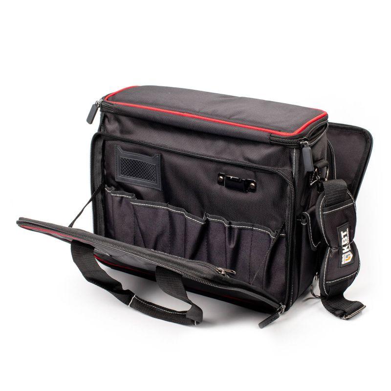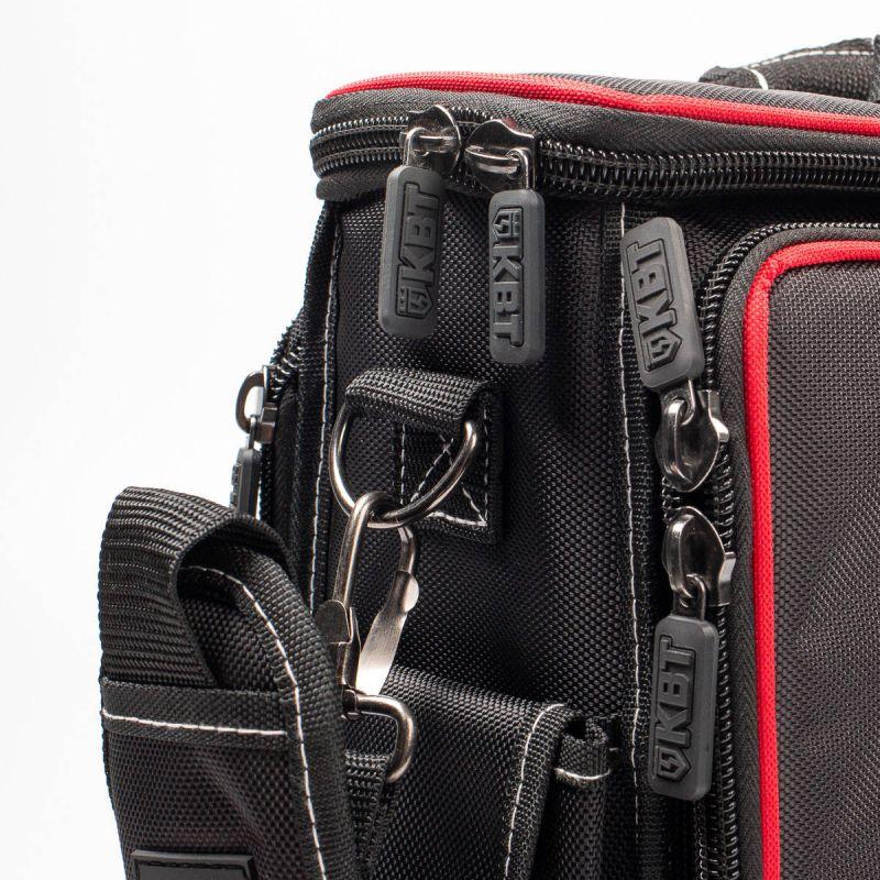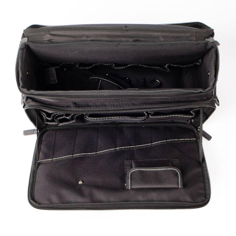 • заднее отделение с откидной стенкой, 6 карманами и 1 металлическим держателем для рулетки