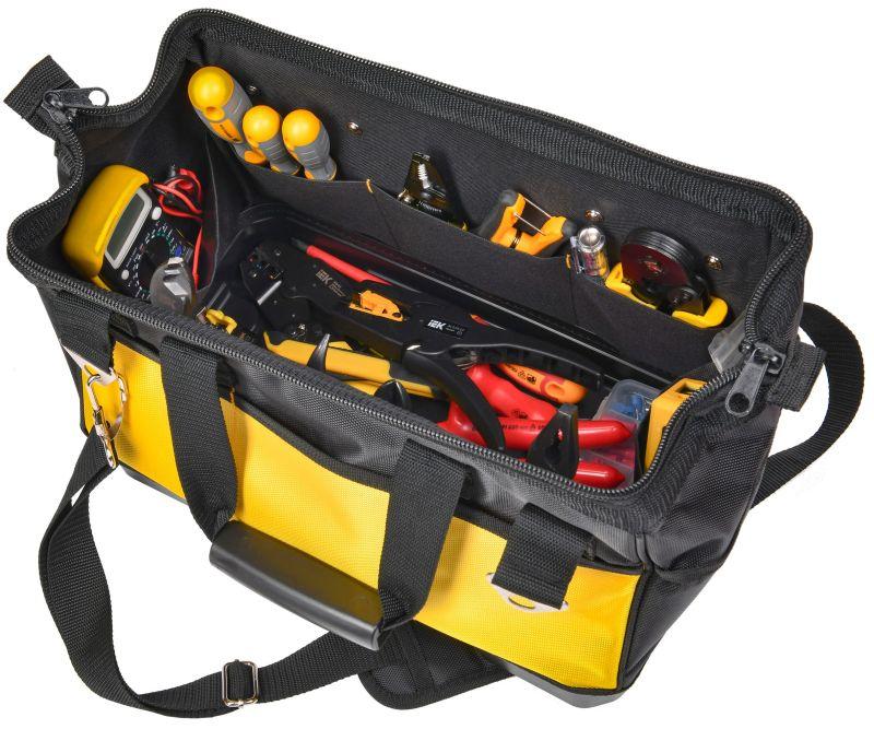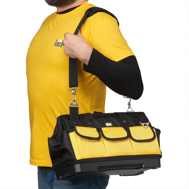Сумка монтажника с пластиковым дном BG-03 предназначена для удобной и безопасной транспортировки инструментов при выездных работах. Сумка выполнена из ткани полиэстер 1680D Оксфорд с PVC-пропиткой. Дно из ударопрочного пластика с высокими бортиками защищает сумку от промокания и загрязнения. Пластиковые ручки и наплечник с анатомической вставкой на ремне.