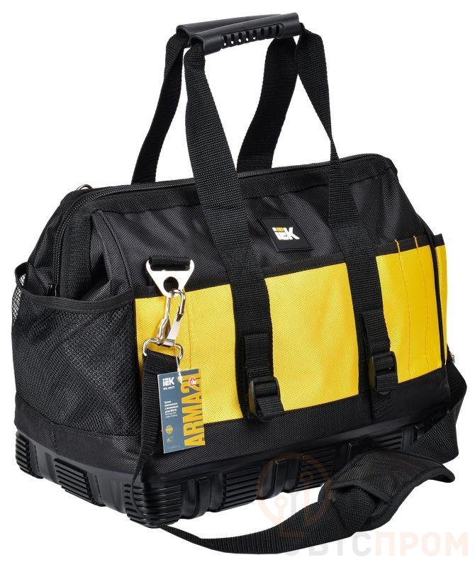 Сумка монтажника с резиновым дном BG-01 предназначена для удобной и безопасной транспортировки инструментов при выездных работах. Сумка выполнена из ткани полиэстер 1680D Оксфорд с PVC-пропиткой. Прорезиненное дно с высокими бортиками защищает сумку от промокания и загрязнения. Резиновые ручки и наплечник с анатомической вставкой.