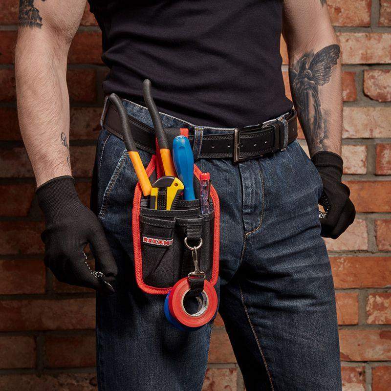 Поясная съемная сумка монтажника REXANT RE-CH предназначена для удобного хранения инструментов. Оснащена 5 отделениями и карабином для фиксации мелких инструментов и деталей, например, изоленты, проволоки, кабеля. Сумка оптимально подходит для работ на высоте, позволяет оставлять руки свободными. Крепится на любой ремень с помощью манжеты с надежной металлической кнопкой. Сумка выполнена из прочного влагонепроницаемого материала: содержимое надежно защищено от механических воздействий и загрязнений. Характеристики: Размеры: 24,5х1,5х14 см Количество отделений: 5 шт. Материал: ткань «Оксфорд» 600D PVC PU, сталь Преимущества: Выполнена из прочных долговечных материалов Влагозащищенный материал Металлические части изготовлены из коррозиестойкого металла Металлические заклепки в местах наивысшей нагрузки обеспечивают долгий срок службы