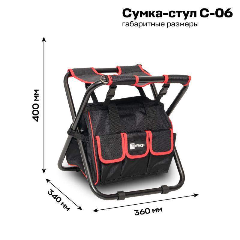 Сумка-стул С-06 используется для хранения и переноски инструмента, а также комфортного монтажа электроустановочных изделий. Особенности: 1. Выполнена из ткани 1680D «Оксфорд», состав 100% полиэстер. 2. Усиленная стальная рама для безопасности. 3. Отстегивающаяся сумка может использоваться отдельно. 4. Унифицированный со всеми моделями ремень с мягким нескользящим наплечником не скатывается с плеча при переноске. 5. Особенно удобна для монтажа розеток, парапетных каналов.