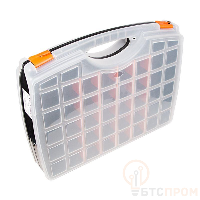Двухсторонний универсальный ящик PROconnect выполнен из прочного пластика. Предназначен для хранения ручного инструмента, разъемов, расходных материалов, крепежа и рыболовных снастей. Регулируемые секции по размеру и количеству позволяют наилучшим образом организовать пространство для быстрого доступа и хранения инструментов. Характеристики: Размеры: 425х330х85 мм Количество съемных секций: 35 шт. Материал: полипропилен Цвет: белый, черный, оранжевый Преимущества: Большое количество съемных секций позволяет конструировать отсеки нужных размеров Подходит для бытового и профессионального использования Выполнен из прочных долговечных материалов