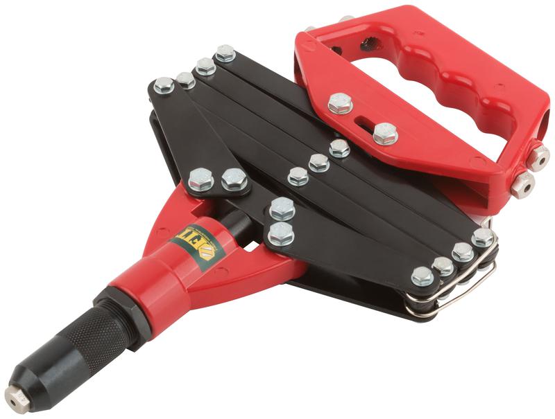 Заклепочник-гармошка FIT IT предназначен для крепления вытяжных алюминиевых и стальных заклепок. Инструмент рассчитан на работу с большим усилием. Заклепочник имеет усиленную конструкцию и оснащен функцией регулировки захвата заклепки. Оснащен пятью быстросменными насадками и пружинным рычагом для выброса оправ от заклепок. Рабочий ход 10 мм, сила вытяжения заклепки > 9000 H. Заклепочник предназначен для работы с заклепками 3,2; 4,0; 4,8; 6,0; 6,4 мм.