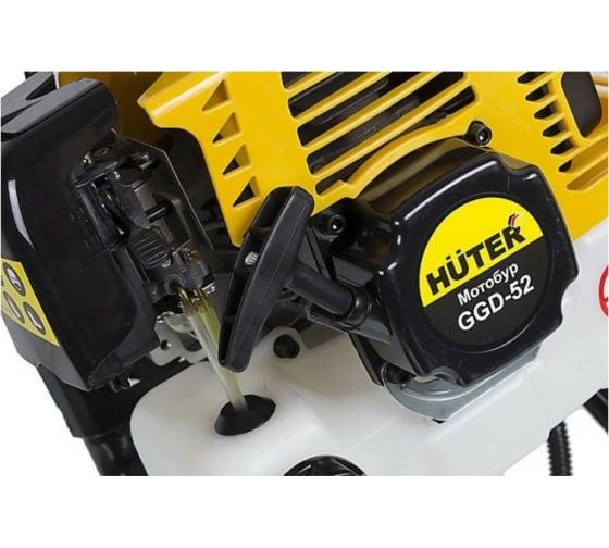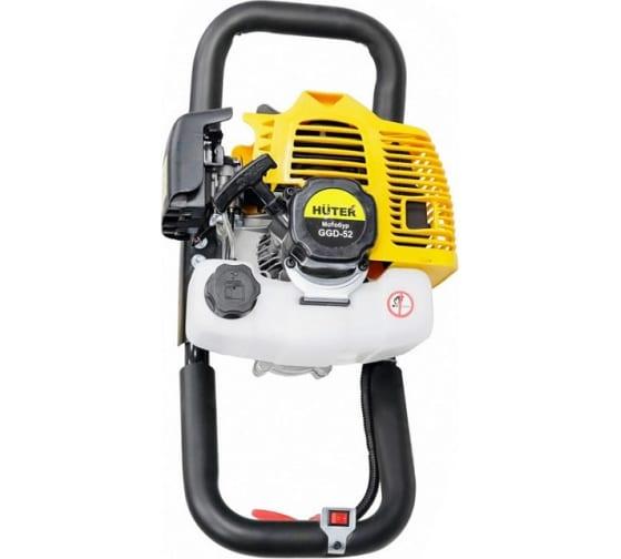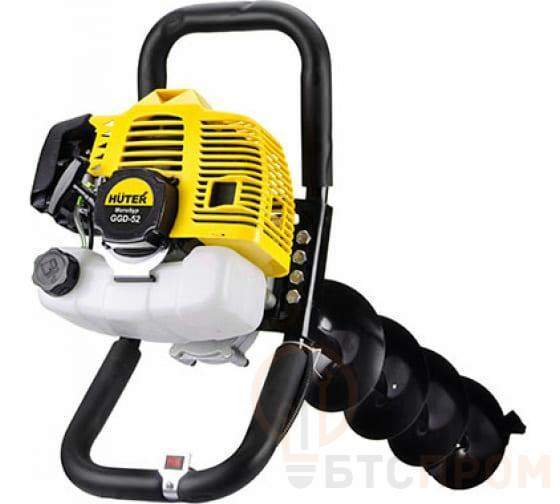 Мотобур HUTER GGD-52 легко справится с бурением отверстий разного диаметра в грунте и толще льда. Инструмент пригодится для зимней рыбалки, установки столбов и опор при строительстве заборов, фундаментов и других целей. Двигатель мощностью 2 кВт работает на бензине с добавлением моторного масла в соотношении 40:1. Топливный бак рассчитан на 1,25 л. Запуск существенно упрощает система легкого старта, благодаря которой завести мотор можно даже в суровых морозных условиях. Агрегат безупречно работает при низкой температуре, что делает его пригодным для бурения лунок для зимней рыбалки. Шнек в комплект не входит, однако вы можете приобрести бур любого размера под конкретные задачи. Производитель предлагает разные варианты для грунта и льда. При необходимости сделать глубокое отверстие рекомендуется использовать удлинитель. При помощи мотобура и удлинителя можно получить отверстия до 2 м глубиной и до 300 мм шириной. Инструмент пригоден для работы с глиной, легким суглинком, песком, гравием, супесью, торфом и льдом. Инструмент прост и безопасен в использовании. Управление вынесено на рукоятку с прорезиненной поверхностью, которая обеспечивает надежное удержание агрегата и снижает вибрацию. Устройство полностью готово к эксплуатации, необходимо только установить шнек нужного размера. Удобный и надежный бензобур HUTER GGD-52 будет полезен на даче, зимней рыбалке, в строительстве, коммунальном хозяйстве.