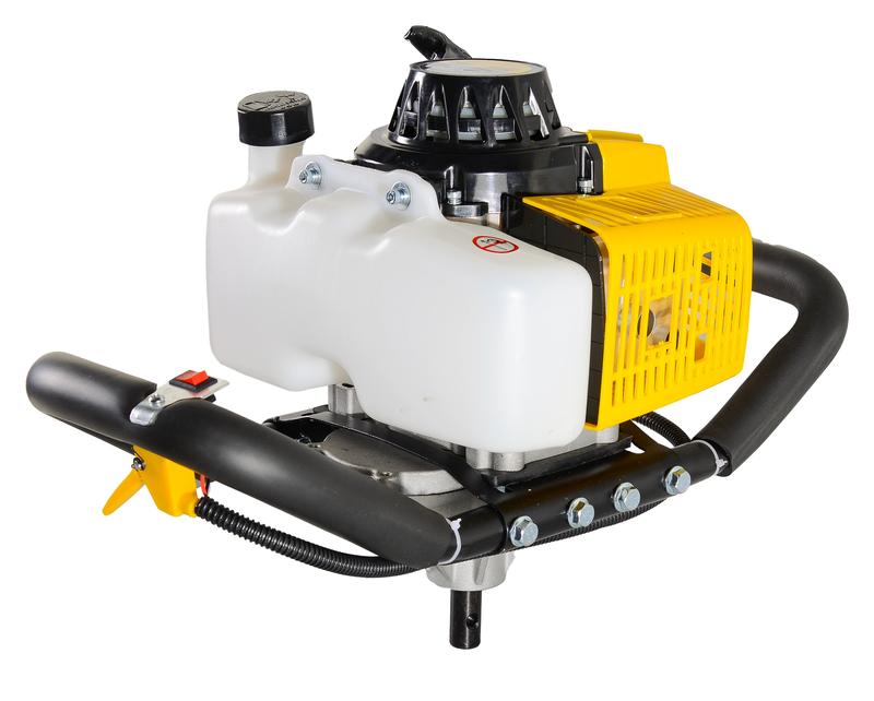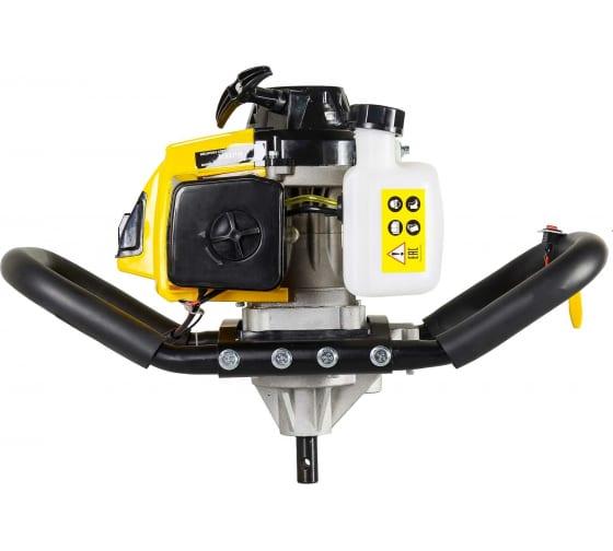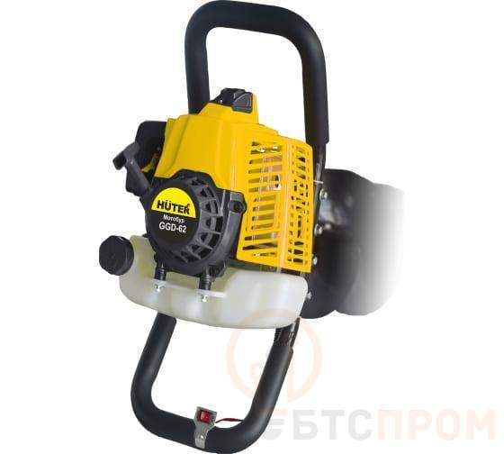 Мотобур HUTER GGD-62 – устройство, нашедшее широкое применение в строительных работах, на дачных участках и в зимней рыбалке. Это самая мощная модель в линейке, что позволяет получить уверенность в том, что аппарат справится с твердым льдом и грунтами. Область применения устройства: подготовка отверстий для установки свай; подготовка лунок для посадки деревьев; монтаж заборных столбов; установка громоотводов; сверление лунок во льду. Одноцилиндровый двухтактный двигатель объемом 63 см? и мощностью в 2,4 кВт с воздушным охлаждением работает на топливной смеси АИ92 и специального масла для 2Т моторов. Особенности HUTER GGD-62: поршневая группа обладает повышенным сроком службы; система легкого старта обеспечивает быстрый запуск мотора; высокая мощность двигателя; управление выведено на прорезиненную рукоятку. возможность работать с устройством при низких температурах; возможность использовать буры диаметром до 300 мм. Кроме этого, шнек можно удлинить. Поставляется мотобур в сборе в коробке без шнека, шнек нужно приобретать отдельно.