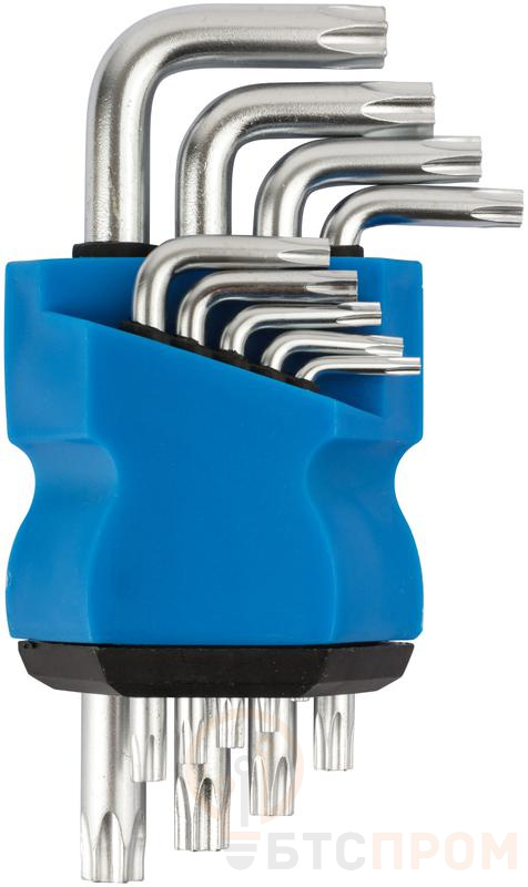Набор ключей TORX MOS предназначен для работ с крепежом элементами при ремонте автомобилей, велосипедов, бытовой и компьютерной техники. Ключи изготовлены из термообработанной инструментальной стали, что обеспечивает их высокую износостойкость. Увеличенная длина ключей позволяет передавать большее усилие во время работы. 9 размеров ключей в наборе способствуют выполнению широкого спектра задач. Хромированное покрытие ключей предотвращает коррозию.