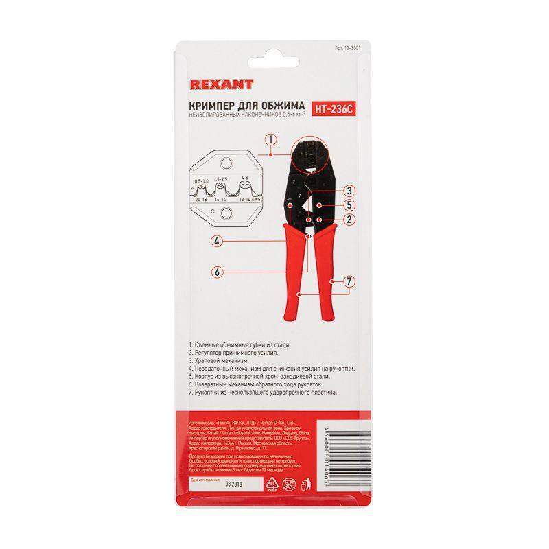 Кримпер HT-236С предназначен для обжима неизолированных клемм сечением 0,5-6 мм2. Корпус инструмента изготовлен из высокопрочной закаленной инструментальной стали с воронением, что обеспечивает длительный срок службы и устойчивость к механическим нагрузкам. Двухконтурная матрица позволяет совершать обжим как по изоляции, так и по жиле. Съемные обжимные губки, изготовленные методом микролитья, гарантируют идеальное соответствие размерам и форме контактов. Передаточный механизм снижает нагрузку на руку при работе. Возвратный механизм автоматически возвращает ручки в исходное положение после каждого цикла обжима. Регулятор силы сжатия позволяет настроить оптимальное усилие обжима для разных типов клемм. Храповой механизм обеспечивает качественную опрессовку без преждевременного разжатия ручек. Нескользящие рукоятки выполнены из плотного синтетического материала, что делает работу комфортной и безопасной даже при длительном использовании.