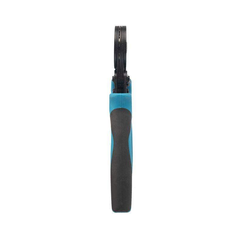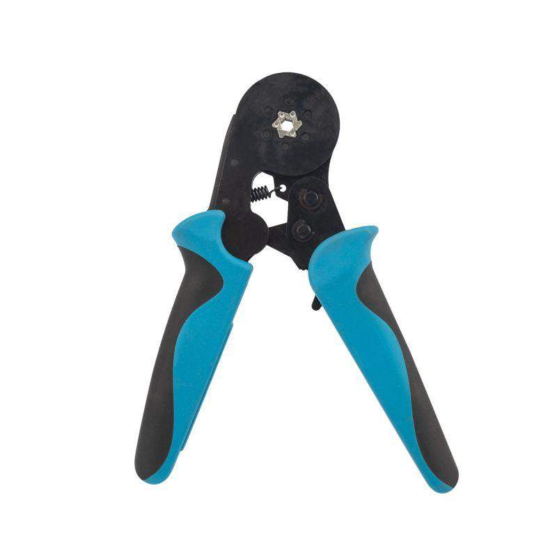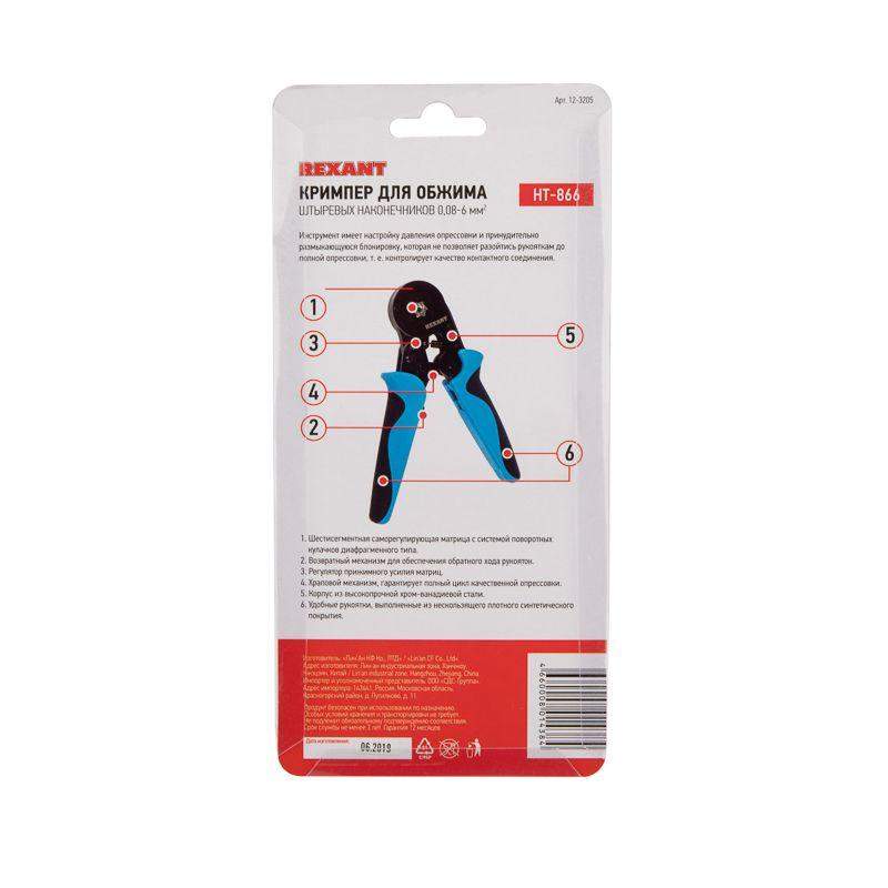 Кримпер HT-866 предназначен для опрессовки штыревых наконечников сечением 0,08–6 мм2. Корпус кримпера изготовлен из высокопрочной закаленной инструментальной стали с воронением, благодаря чему устойчив к механическим воздействиям и имеет продолжительный срок службы. Шестисегментная саморегулирующаяся матрица с системой поворотных кулачков диафрагменного типа выполняет гексагональный профиль обжима, обеспечивая равномерное распределение силы обжима. Есть возможность регулировать давление опрессовки. Возвратный механизм обеспечивает обратный ход рукояток и упрощает процесс работы с инструментом. Храповой механизм производит полный цикл качественной опрессовки. Двухкомпонентные защитные рукоятки выполнены из плотного нескользящего синтетического материала, который делает работу с инструментом легкой и приятной.