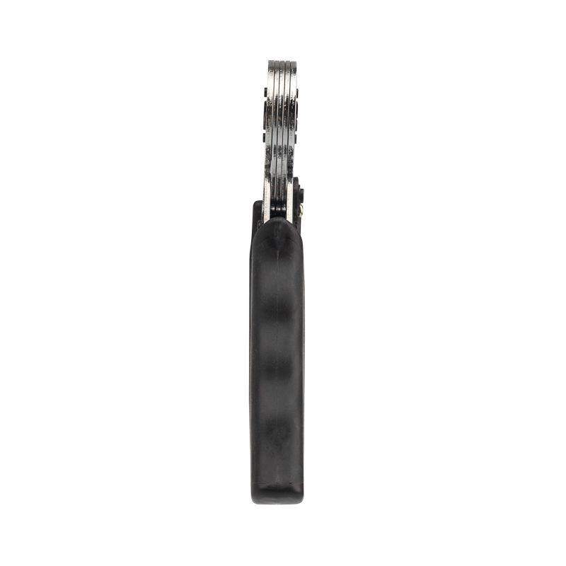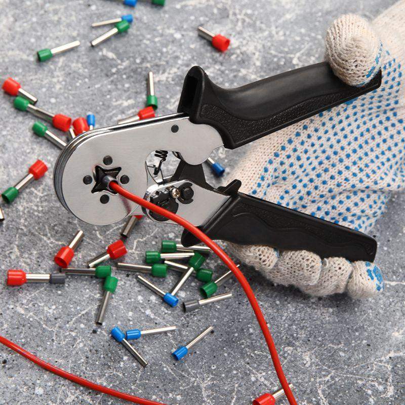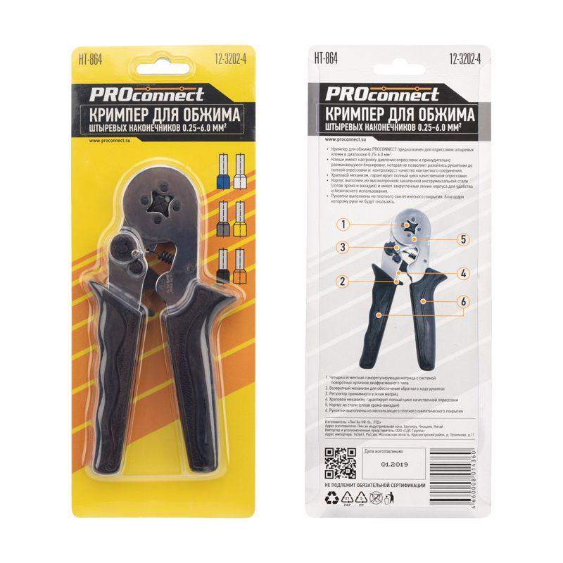 Кримпер HT-864 предназначен для опрессовки штыревых наконечников сечением 0,25–6 мм2. Корпус кримпера изготовлен из высокопрочной закаленной инструментальной стали с хромированием, что обеспечивает длительный срок службы и устойчивость к механическим нагрузкам. Четырехсегментная саморегулирующаяся матрица с системой поворотных кулачков диафрагменного типа выполняет квадратный профиль обжима с рифлением, обеспечивая равномерное распределение силы обжима. Регулятор давления позволяет настроить оптимальное усилие обжима для разных типов клемм. Возвратный механизм автоматически возвращает ручки в исходное положение после каждого цикла обжима. Храповой механизм обеспечивает качественную опрессовку без преждевременного разжатия ручек. Нескользящие рукоятки выполнены из плотного синтетического материала, что делает работу комфортной и безопасной даже при длительном использовании.