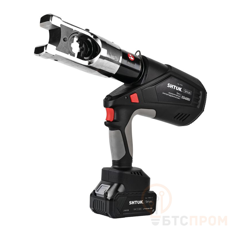 Пресс аккумуляторный электрогидравлический SHTOK ED-400U (19550) с усилием 120 кН — это профессиональный инструмент для высококачественной опрессовки соединительных гильз и наконечников. Он оснащен встроенным литий-ионным аккумулятором, обеспечивающим автономную работу, и мощным электрогидравлическим насосом для быстрого и точного создания необходимого давления.