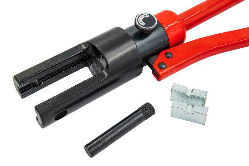 Гидравлические прессы марки НСТ используются для опрессовки неизолированных наконечников, соединительных гильз — медного и алюминиевого исполнения. Допускается применение пресса с гильзами/наконечниками, выполненных из сплавов цветных металлов. Пресс марки НСТ представляет собой устройство, состоящее из гидравлической камеры с рабочим штоком, заполненной гидравлическим маслом, плунжерным насосом соединенным с рукоятками изделия, клапаном/механизмом сброса давления, рабочей головкой закрепленной на рабочем штоке. Рабочая головка представляет собой ложемент для установки сменных гексагональных матриц. Для модели НСТ-70, фиксация матриц осуществляется в нижней и верхней части рабочей головки, исключая возможность свободного выпадения матриц в процессе эксплуатации. Модели НСТ-120 и НСТ-300 имеют ограничительный палец, устанавливаемый в паз рабочей головки после установки матриц. (ВНИМАНИЕ! Запрещается превышать номинальное усилие обжатия, во избежание повреждения сальников и прокладок) В наличии имеется комплект резиновых колец для обслуживания пресса — 2 малых и 1 большое — силиконовых кольца, фторопластовые прокладки — малая и большая Поставляются в кейсе с защелками . Кейс снабжен ручками для переноски. Руководство по эксплуатации поставляется в комплекте с изделием! Наличие маркировки на корпусе изделия и кейсе — ТМ, тип изделия, дата изготовления