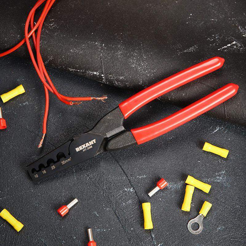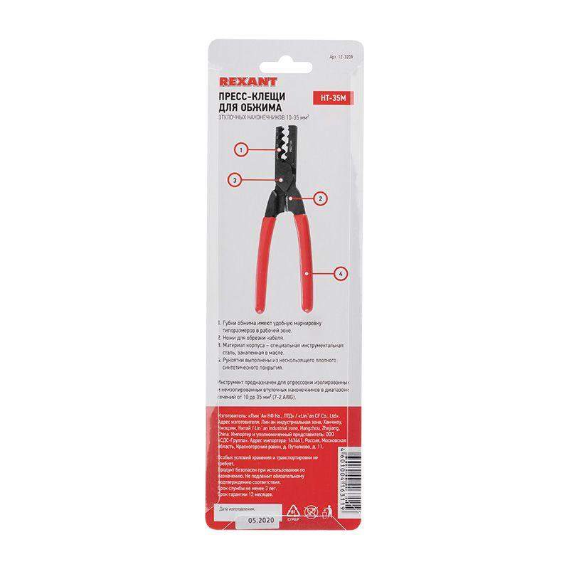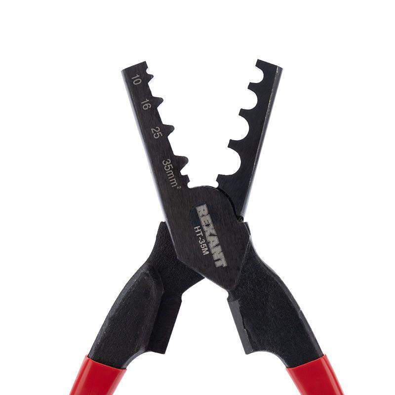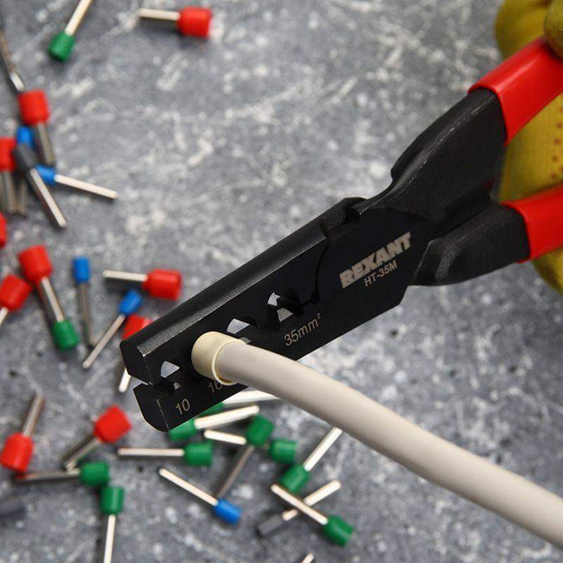Пресс-клещи HT-35M предназначены для опрессовки изолированных и неизолированных втулочных наконечников с диапазоном сечения 10–35 мм2. Корпус клещей изготовлен из высокопрочной закаленной стали, что обеспечивает длительный срок службы и устойчивость к механическим нагрузкам. Профилированные четырехпозиционные обжимные губки предназначены для надежного захвата и эффективного обжима соединительных элементов. На губки нанесена справочная маркировка для удобного и быстрого поиска нужной позиции в матрице. Клещи оснащены режущей кромкой для быстрой и ровной обрезки проводников. Нескользящие рукоятки выполнены из плотного синтетического материала, что делает работу комфортной и безопасной даже при длительном использовании.
