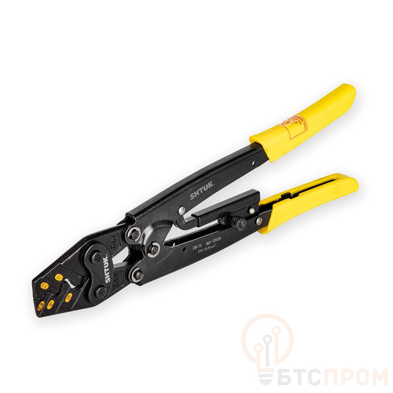 Пресс-клещи ПК-16 (03008) от бренда SHTOK — профессиональный ручной инструмент для надежного и быстрого обжима неизолированных гильз и наконечников. Предназначены для работы с медными и алюминиевыми проводниками сечением от 1.5 до 16 мм², что делает их универсальным решением для большинства электромонтажных задач.