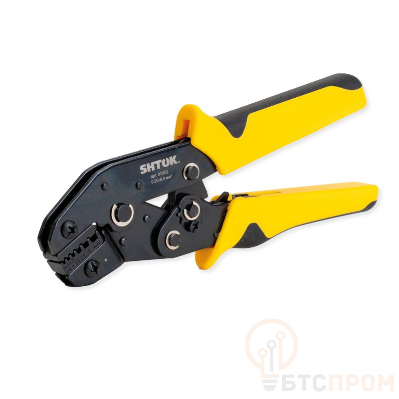 Пресс-клещи ПК-19+ с матрицей "профиль трапеция" (арт. 03202) от SHTOK — профессиональный инструмент для надежного и быстрого обжима неизолированных наконечников и гильз сечением от 0.25 до 6.0 кв.мм.