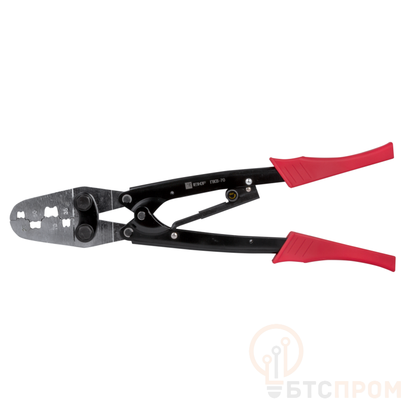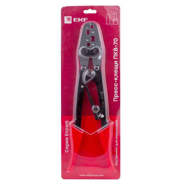Пресс-клещи pkv-70-exp предназначены для НШВИ наконечников сечением 25-70 мм2 и НШВИ(2) наконечников сечением 10-16 мм2. Профиль опрессовки - трапеция с двумя точками.