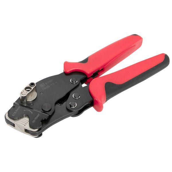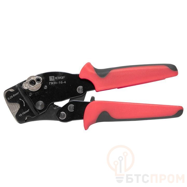Пресс-клещи pkvt-16-4-exp предназначены для НШВИ наконечников сечением 0,25-16 мм2 и НШВИ(2) наконечников сечением 2х0,5-2х10 мм2. Кримпер с четырехсегментной матрицей на торце с автоматической настройкой на необходимый размер гильзы. Инструмент оснащен храповым механизмом с возможностью разблокировки на любом этапе опрессовки. Профиль опрессовки - квадрат.