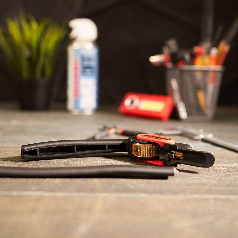 Стриппер HT-5PG предназначен для зачистки внешней силиконовой или ПВХ-изоляции высоковольтного кабеля сечением 25-80 мм2. Корпус стриппера изготовлен из полиамидного пластика, армированного стекловолокном. Позволяет выполнять разрезы на кабеле в любом необходимом месте, способен выполнять все виды разрезов, подходит как для продольной, так и для поперечной резки. Конструкция инструмента, выполненная в соответствии со специальной технологией, исключает повреждение жил провода в процессе снятия изоляции. Регулятор диаметра и глубины разреза провода позволяет адаптировать инструмент под различные типы и размеры изоляции и не повредить сам провод при снятии изоляции. Сняв регулировочный винт, можно заменить двухстороннее лезвие. Пластиковая рукоятка благодаря специальной форме удобно лежит в руке и обеспечивает легкую и приятную работу с инструментом.