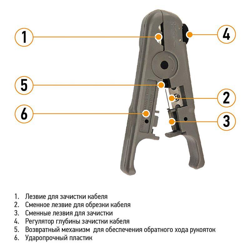 Инструмент HT-S-501B предназначен для быстрой и эффективной зачистки и обрезки витой пары. Корпус инструмента изготовлен из ударопрочного и износостойкого полиамидного пластика. Возможность замены лезвий для обрезки и зачистки кабеля позволяет эксплуатировать инструмент длительное время. Лезвия сменного типа изготовлены из нержавеющей стали, благодаря чему не подвержены коррозии. Оснащен регулировочным колесом для изменения глубины прорезания изоляции, что исключает вероятность повреждение жил кабеля. В корпус встроена возвратная пружина, которая обеспечивает обратный ход рукояток и упрощает процесс работы с инструментом. Пластиковые рукоятки благодаря специальной форме удобно лежат в руке и обеспечивают легкую и приятную работу с инструментом.