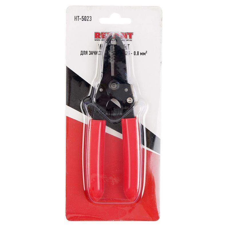 Стриппер HT-5023 предназначен для снятия внешней изоляции одножильного и многожильного кабеля сечением 0,25–0,8 мм2. Также инструмент осуществляет зажим, обработку и обрезку кабеля стальных и медных проводников, формирование монтажных петель. Корпус инструмента изготовлен из высокопрочной инструментальной стали, благодаря чему устойчив к механическим воздействиям и имеет продолжительный срок службы. Специальная конструкция инструмента с маркировкой позволяет зачищать изоляцию без повреждения жилы провода. Оснащен фиксатором закрытого положения и возвратной пружиной, которая обеспечивает обратный ход рукояток и упрощает процесс работы с инструментом. Также в стриппере предусмотрена режущая кромка для равномерной обрезки проводников. Однокомпонентные защитные рукоятки выполнены из плотного нескользящего синтетического материала, который делает работу с инструментом легкой и приятной.