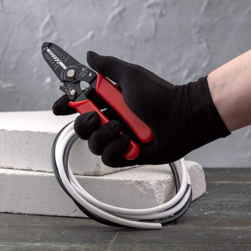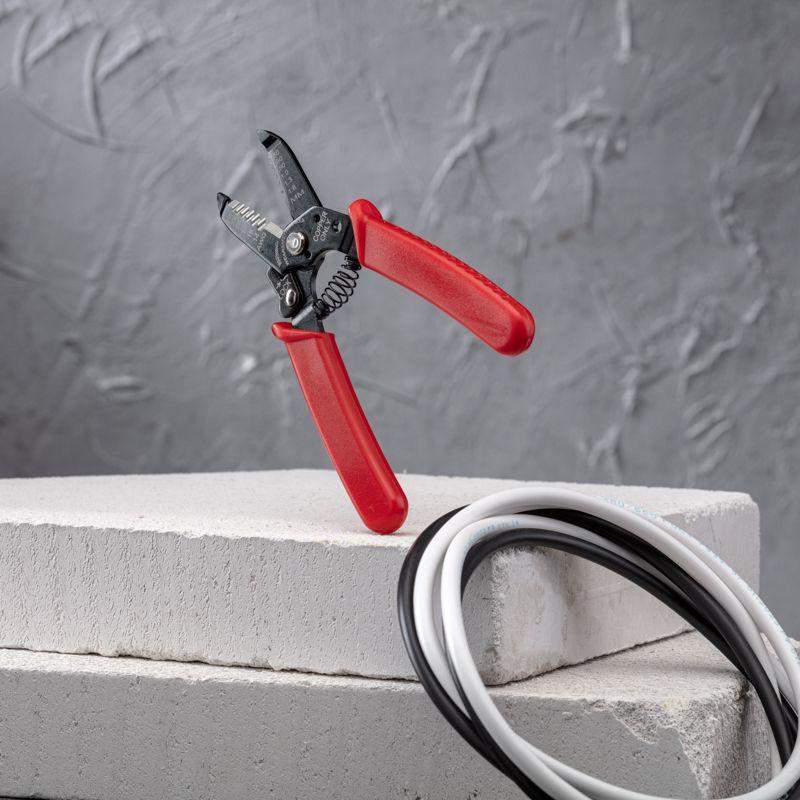 Стриппер HT-5022 предназначен для снятия внешней изоляции одножильного и многожильного кабеля сечением 0,5–1,6 мм2. Также инструмент осуществляет зажим, обработку и обрезку кабеля стальных и медных проводников, формирование монтажных петель. Корпус инструмента изготовлен из высокопрочной инструментальной стали, благодаря чему устойчив к механическим воздействиям и имеет продолжительный срок службы. Специальная конструкция инструмента с маркировкой позволяет зачищать изоляцию без повреждения жилы провода. Оснащен фиксатором закрытого положения и возвратной пружиной, которая обеспечивает обратный ход рукояток и упрощает процесс работы с инструментом. Также в стриппере предусмотрена режущая кромка для равномерной обрезки проводников. Двухкомпонентные защитные рукоятки выполнены из плотного нескользящего синтетического материала, который делает работу с инструментом легкой и приятной.