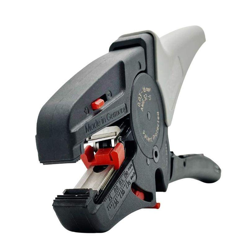 Инструмент для снятия изоляции FELO 58320040 предназначен для снятия защитных оболочек с различных видов круглых и плоских кабелей. Рукоятки и корпус инструмента изготовлены из армированного стекловолокном пластика, обеспечивающего продолжительность эксплуатации. Точный пружинный механизм обеспечивает легкость хода рукояток при работе. Стриппер полностью автоматический и не требует дополнительных настроек при работе. Предусмотрена возможность работы с одножильными и многожильными кабелями с сечением от 0,03 до 16 кв. мм. Инструмент имеет регулировку по длине зачистки кабеля до 20 мм. Так же дополнительный механизм позволяет отрегулировать силу примыкания ножей инструмента при работе с кабелями с мягкой изоляцией. Отрезной нож находится снизу и закрывается предохранительной планкой, что исключает незапланированный контакт с кабелями при работе. Стриппер имеет съёмные ножи, можно использовать ножи круглого и V-образного сечения. Приобретаются, как отдельные позиции.