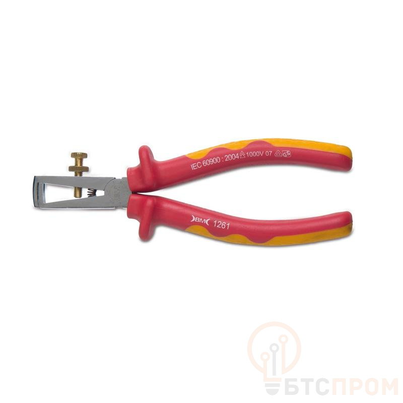 Диэлектрические клещи BM-1261 — это профессиональный инструмент, предназначенный для безопасного и точного снятия изоляции с проводов под напряжением. Благодаря изолированным рукояткам, соответствующим стандарту VDE и рассчитанным на напряжение до 1000 В, они обеспечивают надежную защиту электромонтажника при работе в электроустановках.