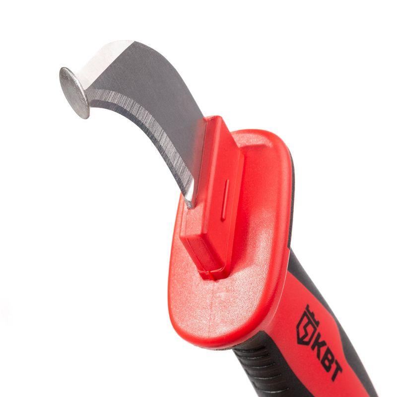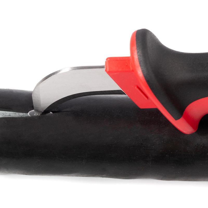 • Частично изолированное изогнутое лезвие с «пяткой» для легкого вскрытия оболочки кабеля без риска повреждения жилы