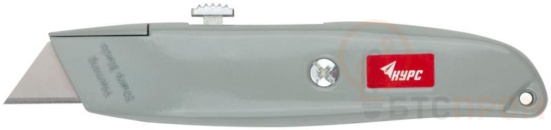 Для резки напольных покрытий. Материал: трапециевидное лезвие из инструментальной стали, металлический корпус. Упаковка: блистер.