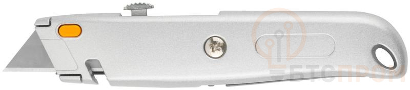 Для резки напольных покрытий.Корпус из алюминиевого сплава и сочетает высокую прочность при малом весе.С отсеком для хранения лезвий.Выемка в корпусе позволяет резать веревки, шнуры и т. д., не выдвигая лезвие.Кнопка на корпусе ножа позволяет быстро заменить лезвие.Острозаточенные лезвия изготовлены из высокоуглеродистой инструментальной стали марки 75 и закалены до твердости HRC 61-63. Движок округлой формы позволяет выдвигать и фиксировать лезвие в одном из трех положений