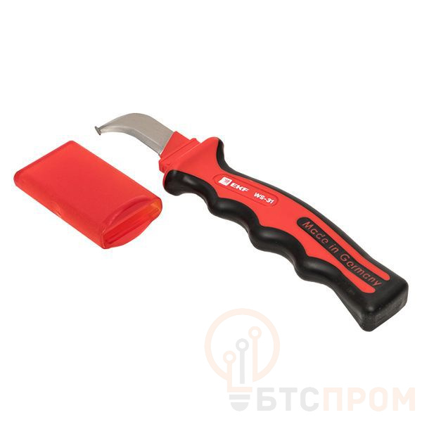 Соответствует требованиям норм безопасности VDE и пригоден для работ под действующим напряжением до 1000V. Режущее лезвие выполнено из "золлингеновской" стали, долго держащей заточку и не подверженой коррозии. Рукоятка выполнена из полиамида, армированного стекловолокном. На ней имеются эргономичные выступы и мягкое покрытие для удобного удержания рукой и возможности приложения бОльшего усилия при снятии изоляции "на себя". Гарда на рукоятке .защищающая руку от перескока искры и от соскальзывания зону резки. Специальный угол заточки режущего лезвия для более легкой работы с кабелем. Специальная пятка, предотвращающая повреждение токоведущей жилы и ограничивающая глубину снятия изоляции. Возможность снятия изоляции "от себя" и "на себя". Снятие наружней оболочки с кабеля и провода.