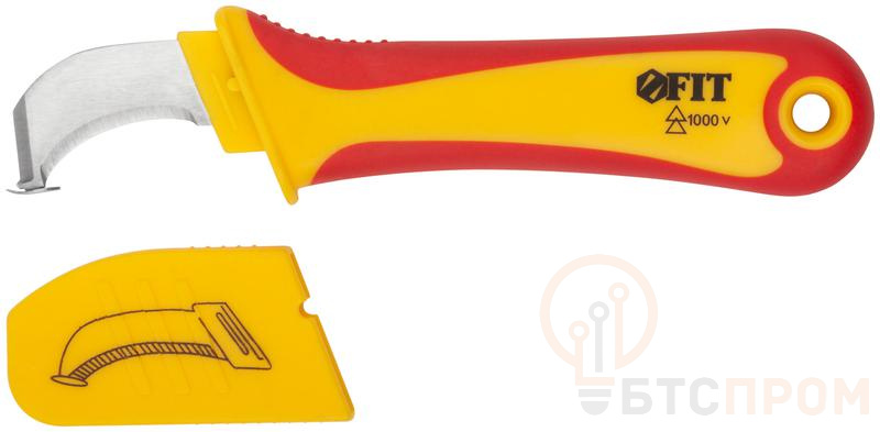 Нож для электромонтажных работ FIT IT с пяткой предназначен для снятия изоляции при напряжении до 1000 В. Пятка позволяет аккуратно снять изоляцию, не повредив при этом провод, что особенно важно для начинающих мастеров без опыта разделки кабелей. Диэлектрический нож с пяткой используется при работе с плоскими кабелями. Лезвие изготовлено из нержавеющей стали, рукоятка — пластиковая, прорезиненная. Пятка надежно и ровно приварена к лезвию. В комплекте поставляется защитный колпачок.