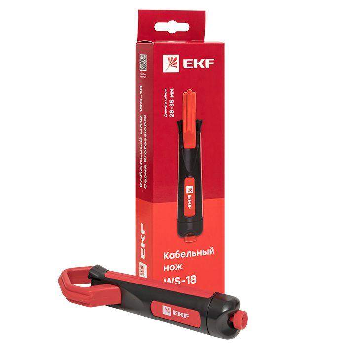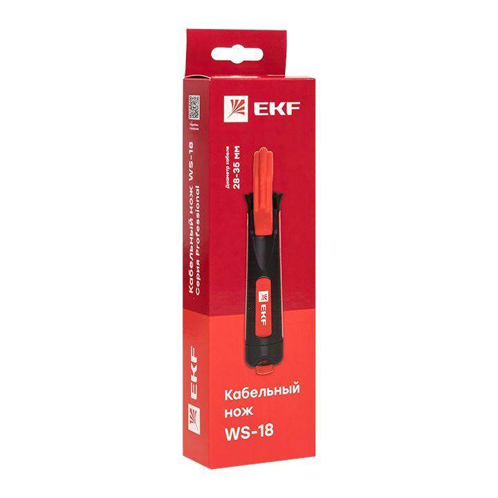 Кабельный нож WS-18 EKF используется для быстрого и аккуратного снятия ПВХ-оболочки круглых кабелей диаметром от 28 до 35 мм с помощью вращающегося лезвия-эксцентрика, позволяющего выполнять как круговой поперечный, так и продольный рез оболочки кабеля
