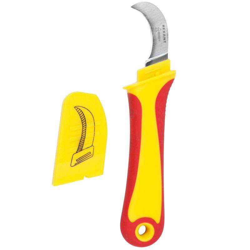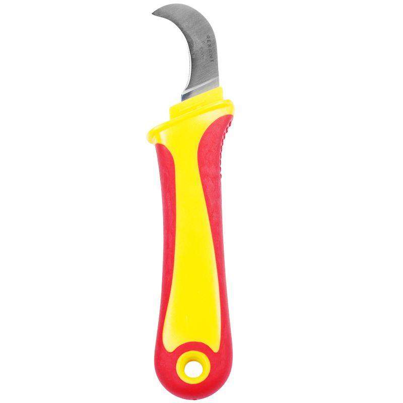 Нож монтажника предназначен для удаления изоляции с многожильного кабеля и других электромонтажных работ. Усиленное лезвие со специальной двухсторонней заточкой для работы с толстыми материалами изготовлено из нержавеющей стали, благодаря чему защищено от коррозии и имеет продолжительный срок эксплуатации. За счет прецизионной заточки лезвия инструмент обеспечивает высокое качество снятия оболочки без риска повредить жильную изоляцию. Изогнутая форма лезвия делает нож удобным для работы в труднодоступных местах. Мощная противоскользящая рукоятка изготовлена из мягкого пластика и гарантирует комфорт и безопасность во время работы. Для удобного хранения и транспортировки ножа предусмотрены пластиковые ножны.